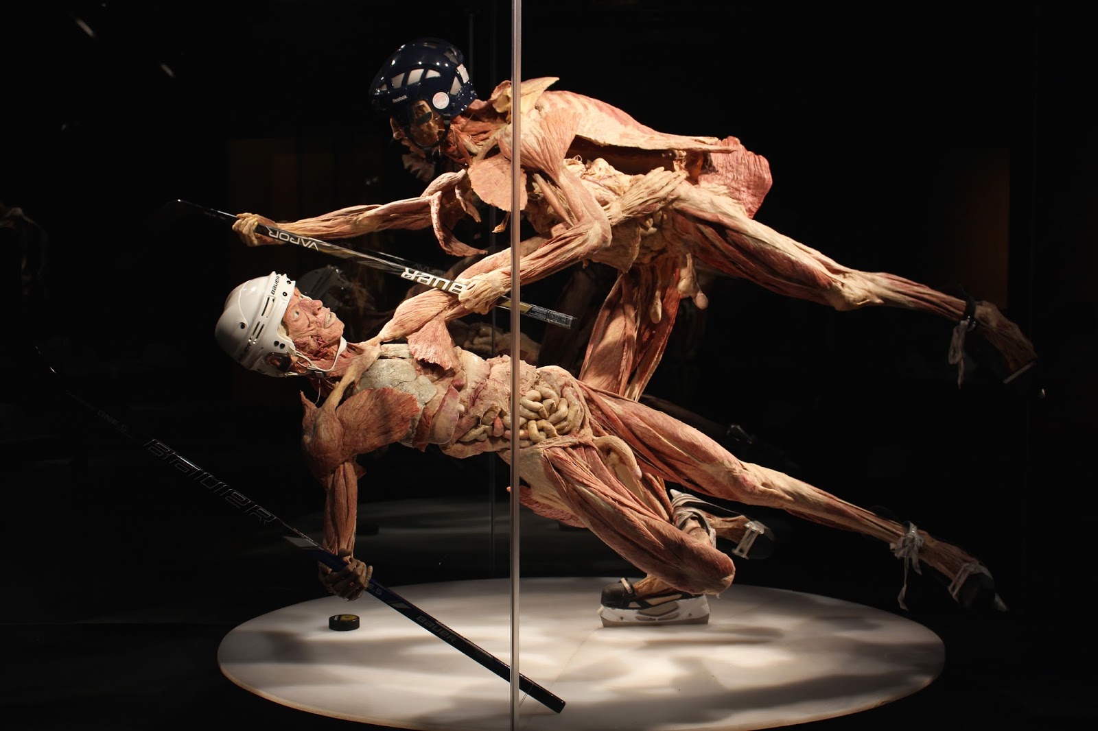 We got to hear Dr. Angelina Whalley speak about the history of the exhibit and the plastination process. She is the creative designer and conceptual planner of the exhibit and is actually married to the inventor himself, Dr. Gunther von Hagens. Plastination is a technique that is used to preserve the body, which turns the tissues into solid, durable, and odorless specimens that are used for the purposes of education. All of this takes place at the Institute for Plastination in Heidelberg, Germany. Fun fact: A whole body plastinate (like the baseball player above) can take up to 1,500 hours to complete!