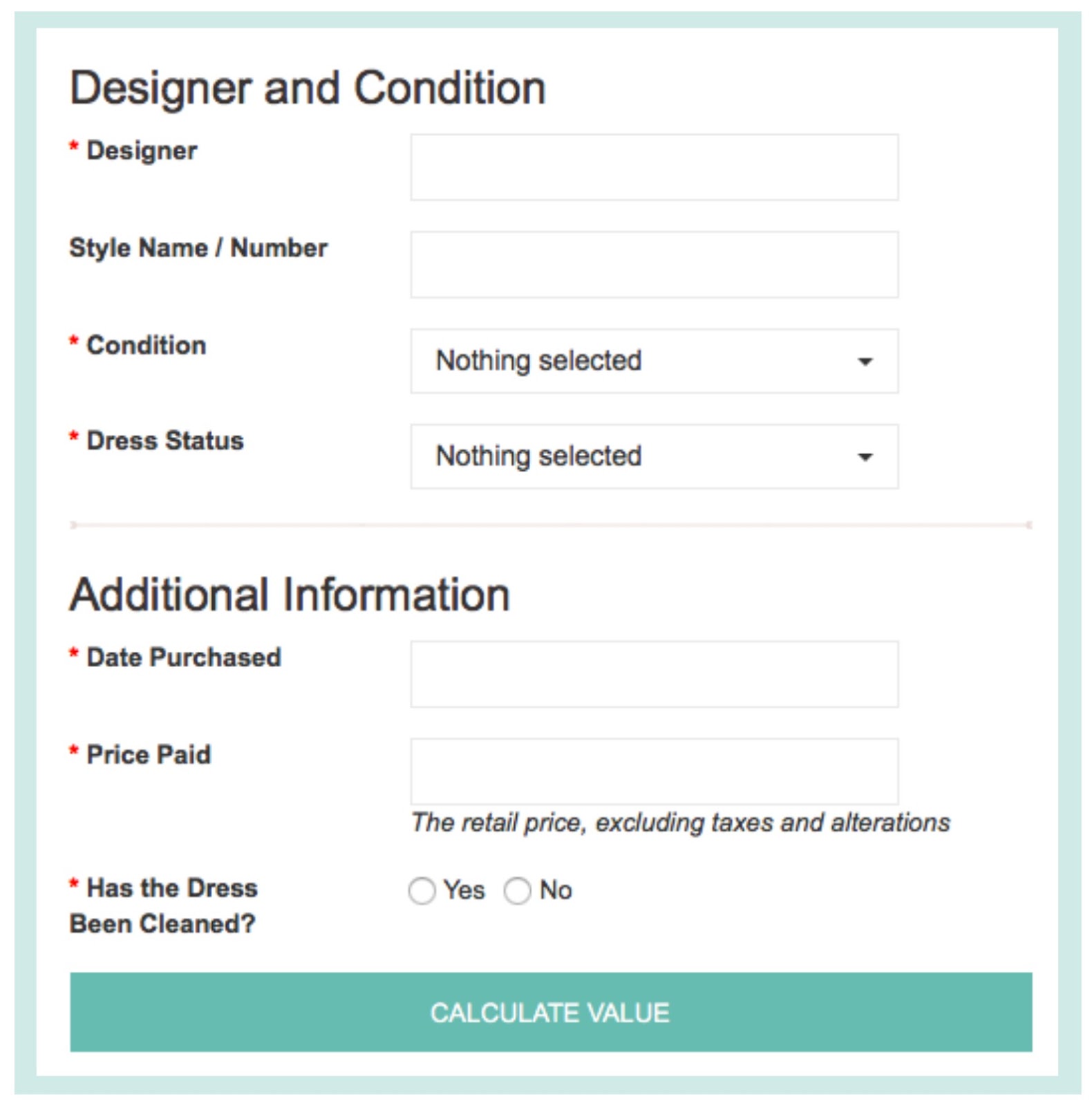PreOwnedWeddingDresses.com has a wedding dress value calculator that literally takes 5 seconds to fill out. All you need to know is the designer & style of your dress, condition, the date it was purchased, the price, and if it has been dry cleaned. You don’t have to list it for the calculated price, but it’s a good place to start.
