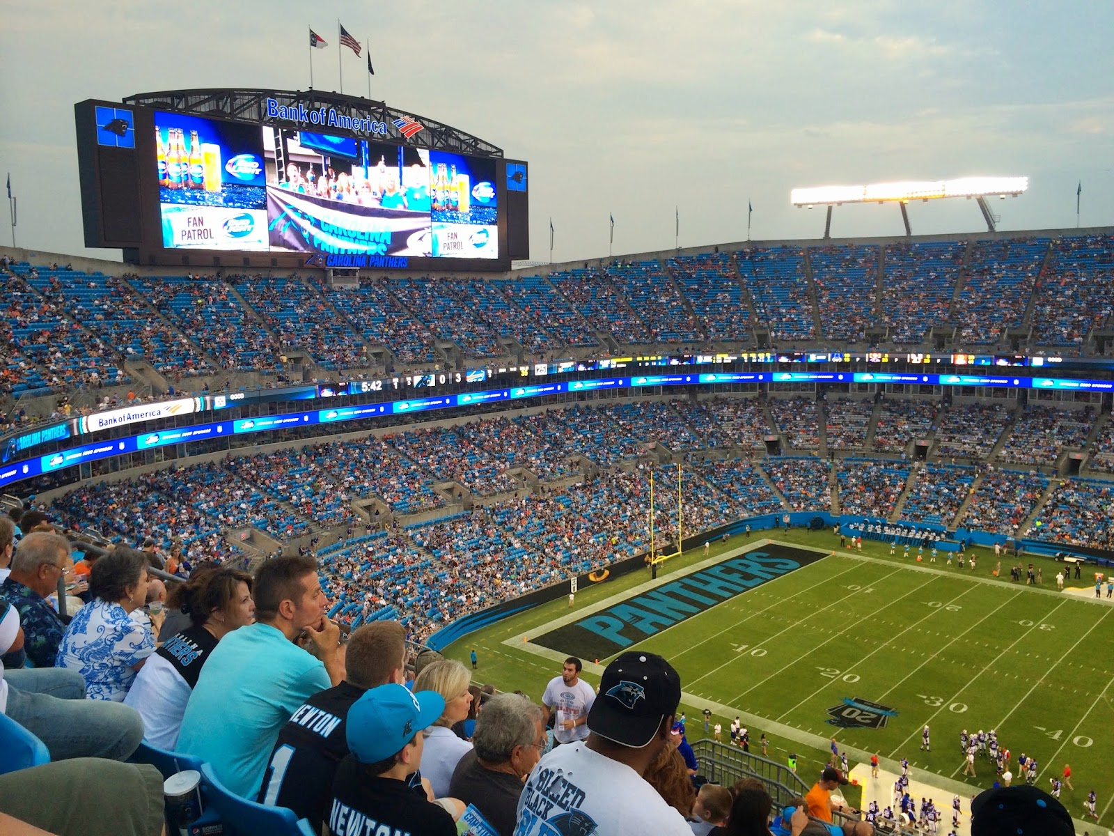As you may know, this weekend we celebrated Ryan’s birthday and it was filled with lots of entertainment. On Friday, we went to the Panthers first pre-season game which was so much fun (thank goodness the rain held out). We were excited to check out the renovations to the stadium and let me just give a shout out to the escalators. My feet thank you. We finished the night off with some beverages at Tin Roof, a live music bar in the Epicenter.